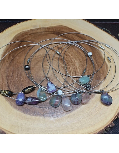 Natural stone 16in pendant necklace, stainless steel 10pc Wholesale lot